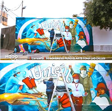 Artista: Kelly Tasayco    Mural: Unión de mi pueblo      Lugar: Av. San Martín, Cdra. 13               Medidas: 3.50 x 10.50 m