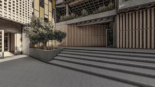 Explanada principal, espacio integrador de los módulos principales del proyecto